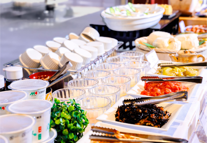 - 竹篩豆腐、味噌豆腐、納豆、高菜漬、各式漬物 等