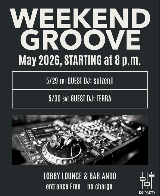 毎週末にホテル1Fの”LOBBY LOUNGE&BAR ANDO”にて