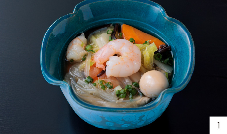 - 01. 【太平燕】 熊本の中華料理店や家庭でも定番の一品。春雨を使った中華風スープです。