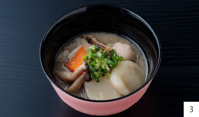 - 03. 【だご汁】 “だご”とは熊本弁で“団子”のこと。すいとん粉を使った平らなだんごが入った汁物です。
