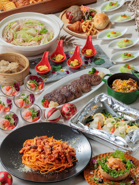 大満足の蟹食べ放題に加え、豪華メニューが勢揃い。旬の食材を使用したホテルシェフ自慢の洋食・中華を豊富に取り揃えております。さらに、パティシエ自慢のスイーツもお楽しみいただけます。(ソフトドリンク飲み放題付)