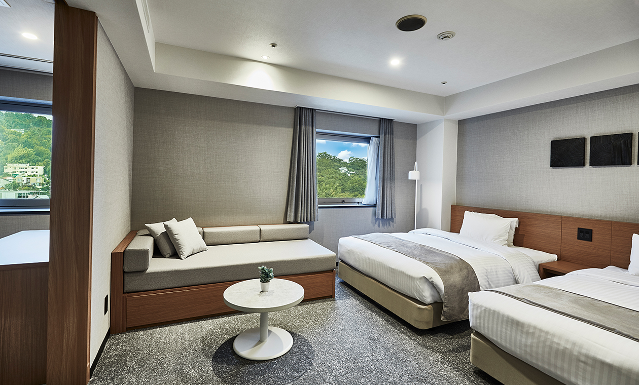 □人数:2~5名 □面積:35.0m²・45.1m² □ベッドサイズ:140cm ソファベッド 88cm